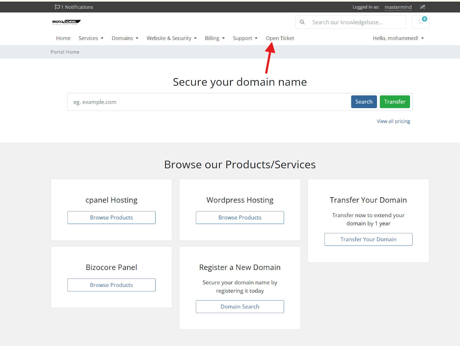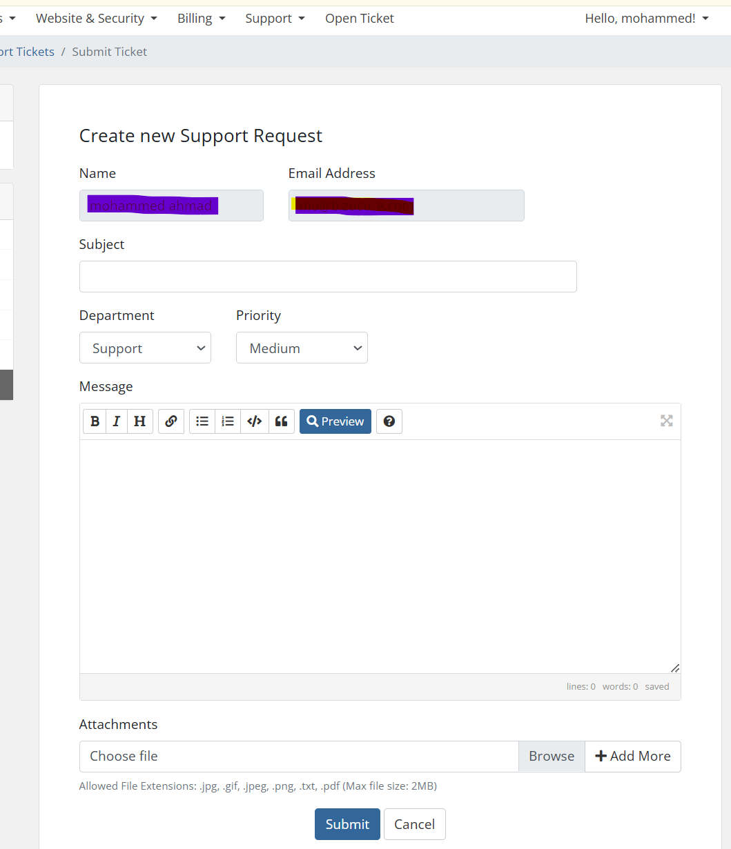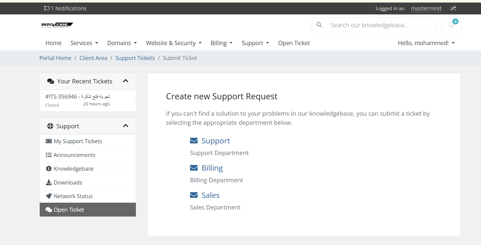 خطوات فتح تذكرة تسجيل دخول من account ثم login من القائمة اختيار Open Ticket اختيار القسم المراد فتح تذكرة فيه كتابة عنوان ومحتوى التكت ثم اختيار submit
